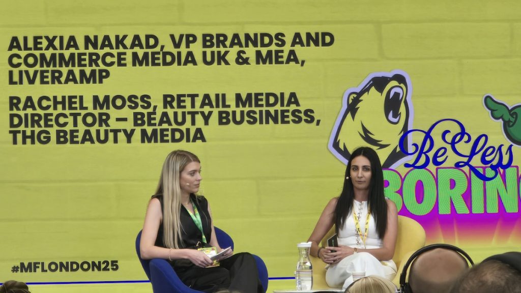 Last month, this journey led to the development of a dedicated retail media network (RMN) for its beauty business, which was launched in partnership with Zitcha. Integrated into THG Ingenuity, the retailer’s ecommerce solutions arm, THG Beauty Media “offers onsite and offsite, and our solutions are available for full-funnel impact from discovery all the way through to conversion. This includes ad solutions across onsite display, email, media, PLP – powered by Criteo, all enriched with our data to ensure we have that precision,” said Rachel Moss, Retail Media Director – Beauty Business at THG Beauty Media, speaking at Mad//Fest London 2025 with Alexia Nakad, VP Brands and Commerce Media UK & MEA at LiveRamp.